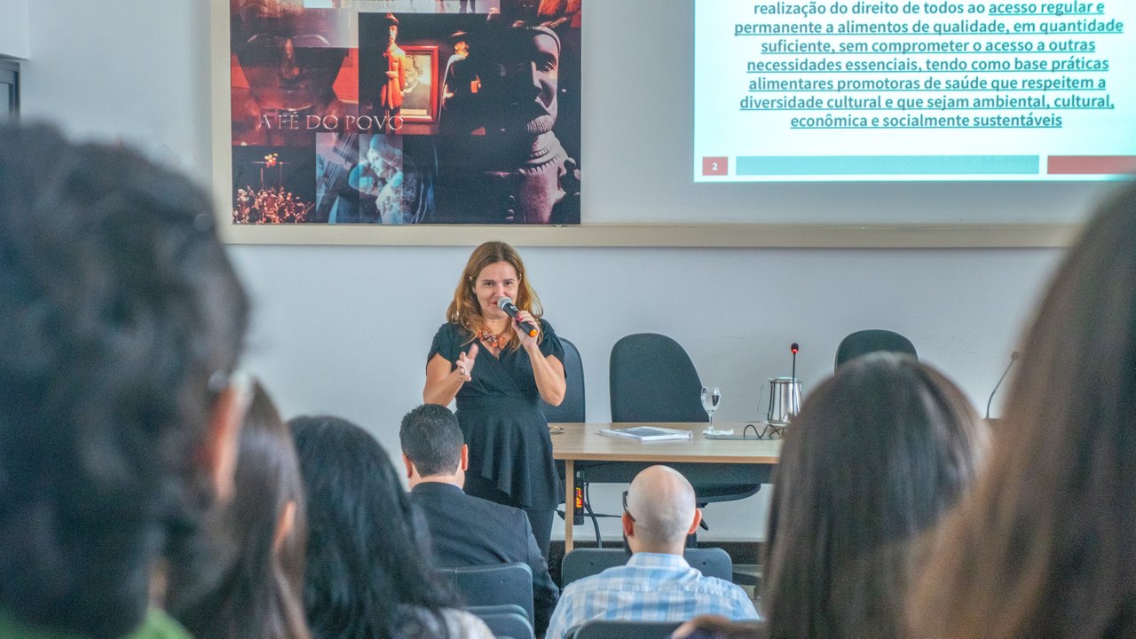 Em sua apresentação, a promotora também destacou o Artigo 3º da Lei 11.346/06 que afirma ser a segurança alimentar e nutricional a realização do direito de todos ao acesso regular e permanente a alimento de qualidade, em quantidade suficiente, desde que não comprometa o acesso a outras necessidades essenciais.