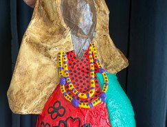 A exposição presta homenagem aos mestres e mestras da cultura popular alagoana, aos folguedos e aos fazedores de cultura que mantêm vivas as tradições do estado. O público encontrará esculturas criadas com técnicas de papietagem e papel machê, enriquecidas com fitas, rendas, cordões e lantejoulas, elementos que traduzem a estética do universo popular.