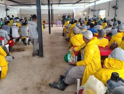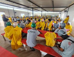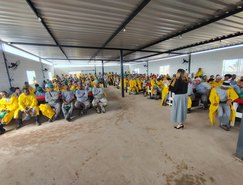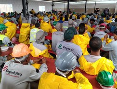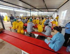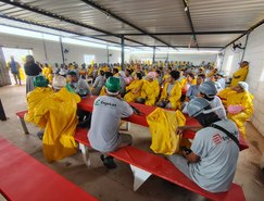 A funcionária Adriana, que integra a equipe de Recursos Humanos da construtora responsável pela obra, agradeceu a todos pelo momento de sensibilização com os trabalhadores.