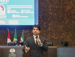 O palestrante da tarde, juiz Helestron Costa, apresentou métricas e normativas do Conselho Nacional de Justiça (CNJ) para orientar o uso da inteligência artificial no Judiciário. Ele destacou experiências já aplicadas em outros tribunais, inclusive com ferramentas desenvolvidas por empresas.