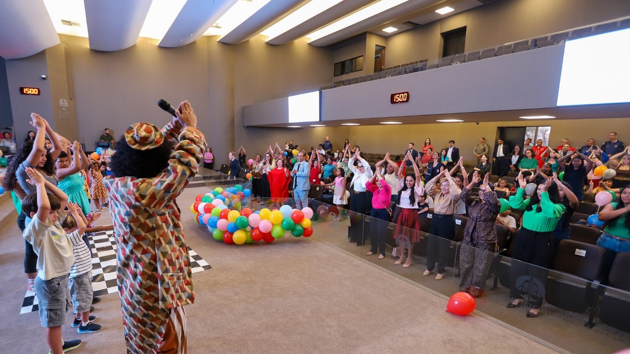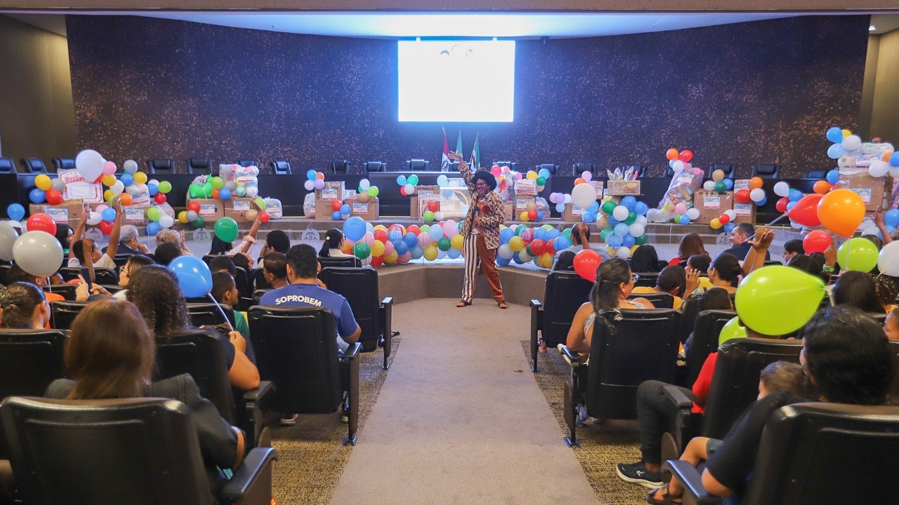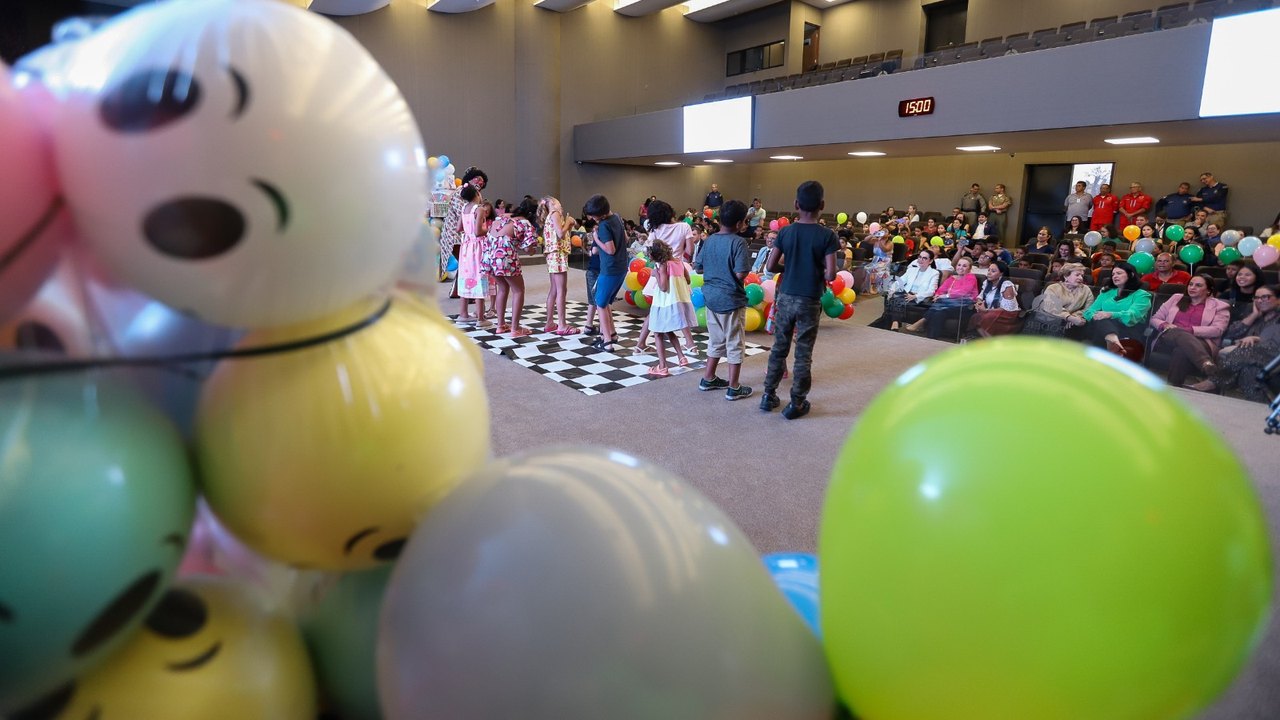 Mais de 100 crianças de lares de acolhimento participaram de evento com palhaço e parquinho; ação beneficia 400 acolhidos no estado