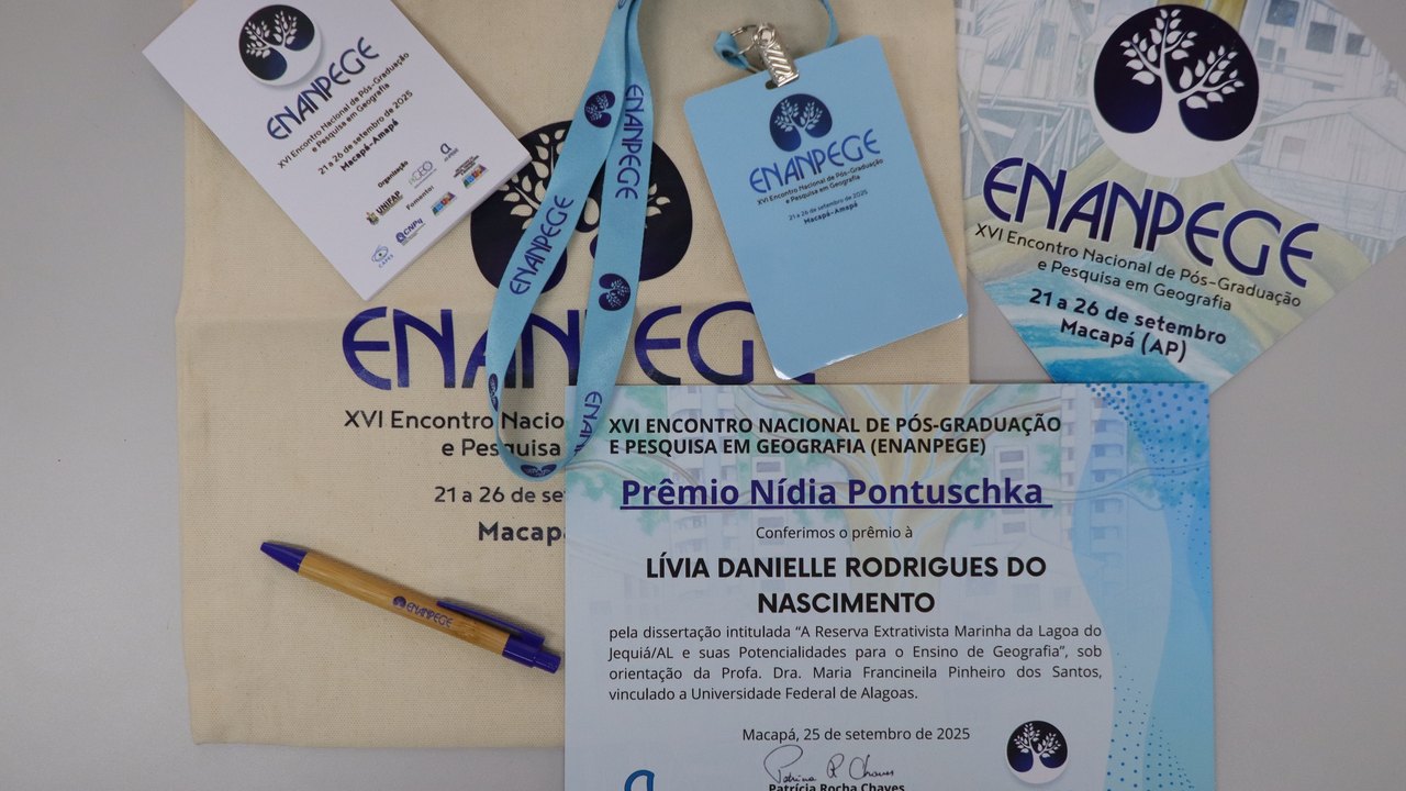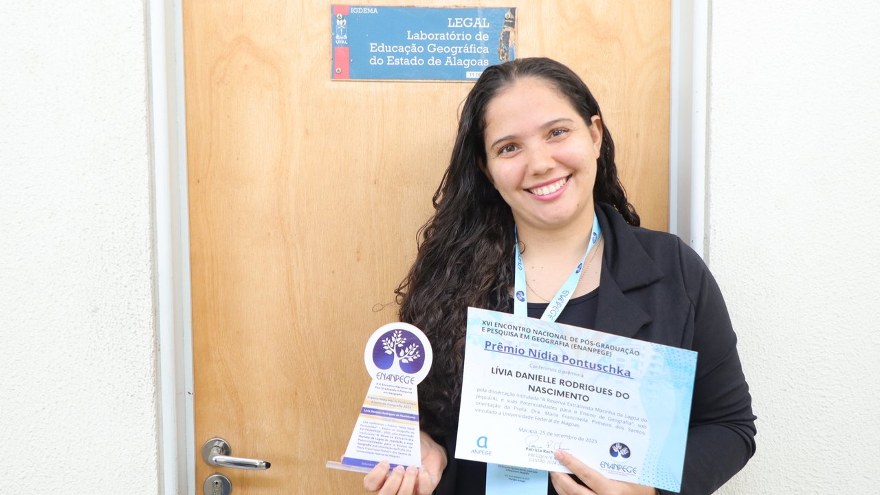 Ficou para a egressa do mestrado e doutoranda do Instituto de Geografia e Meio Ambiente (Igdema) da Universidade Federal de Alagoas (Ufal), Lívia Danielle Rodrigues do Nascimento, o referenciado Prêmio Nídia Nacib Pontuschka, que não só destaca a instituição alagoana no cenário nacional, mas também o Nordeste: é a primeira vez que a região recebe o prêmio em uma dissertação no campo do Ensino em Geografia.