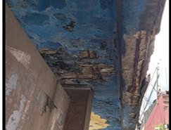 - A estrutura está deteriorada e enferrujada, representando um risco de acidente.