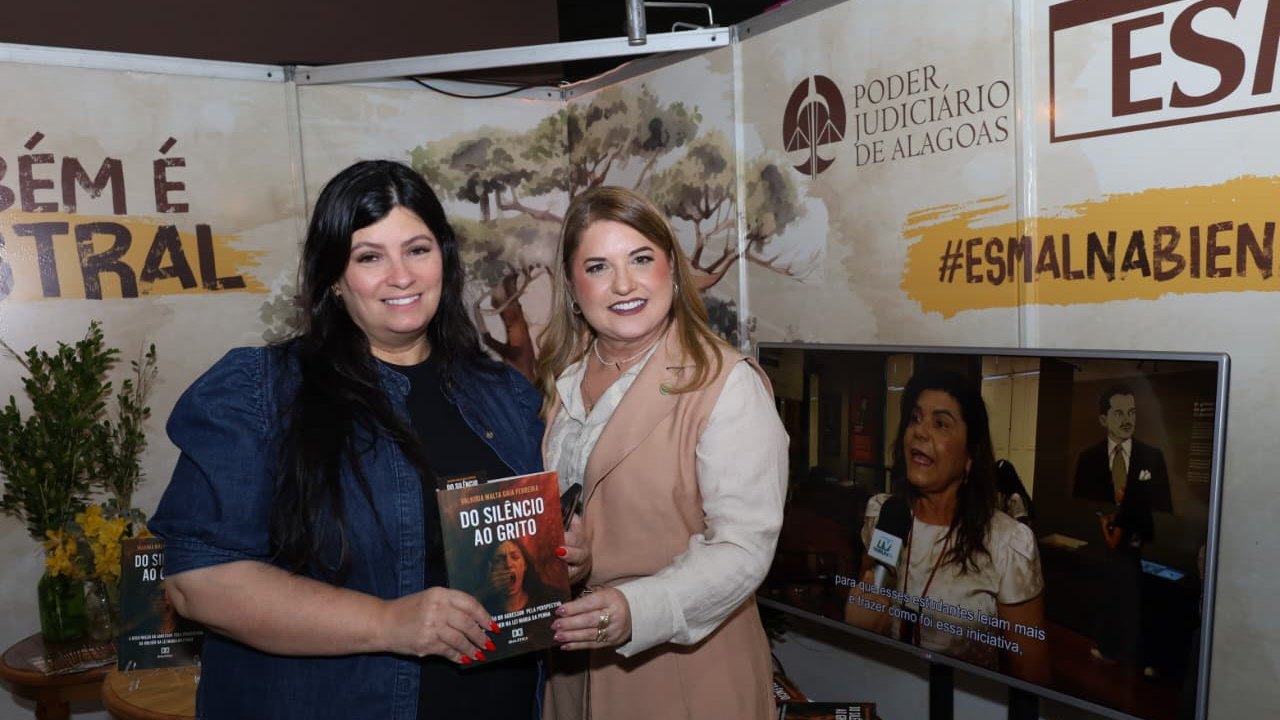 Aconteceu na noite neste domingo (2), no estande da Escola Superior da Magistratura de Alagoas (Esmal) na 11ª Bienal do Livro de Alagoas, o lançamento de 'Do silêncio ao grito: a redefinição do agressor pela perspectiva da mulher na Lei Maria da Penha', de Valkíria Malta Gaia Ferreira. O desembargador Orlando Rocha Filho prestigiou o evento e adquiriu um exemplar da obra.