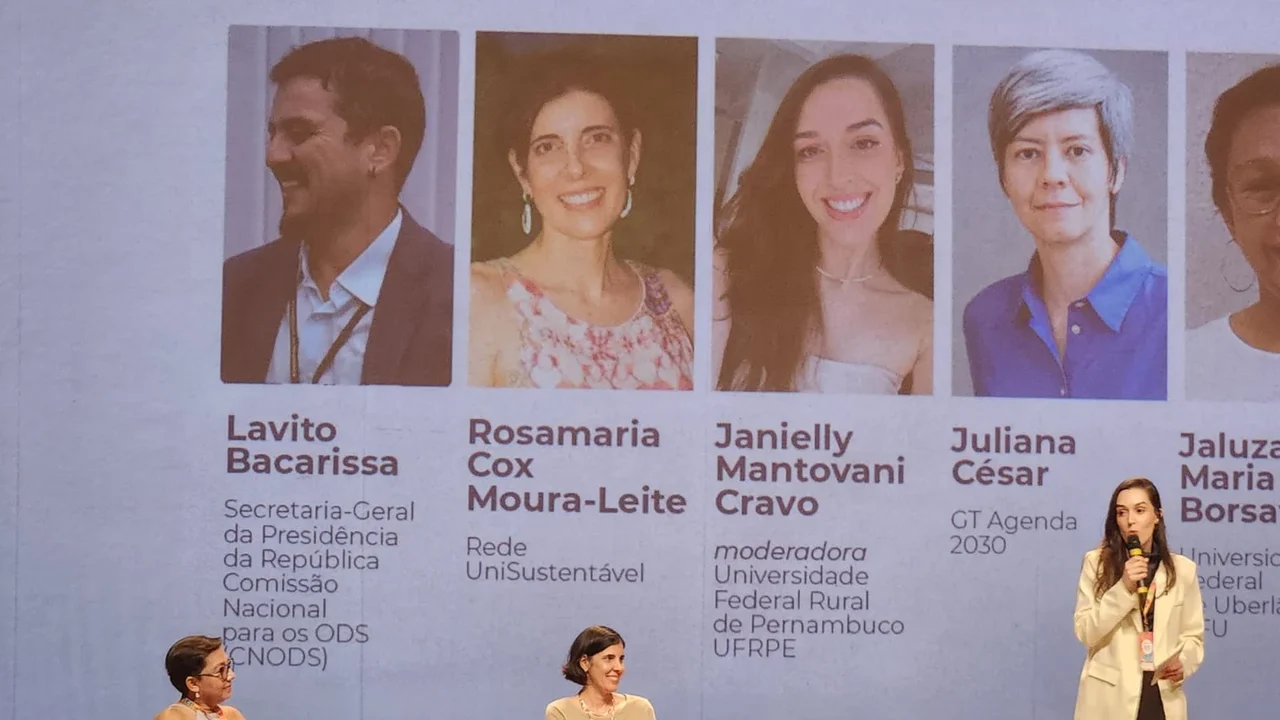 Antes da entrega dos certificados, foi realizada a mesa-redonda sobre “Integração e Disseminação da Agenda 2030 na Educação do Brasil”, mediada pela coordenadora de Sustentabilidade da UFRPE, Janielly Mantovani Cravo, com participação de Lavito Bacarissa; Rosamaria Cox Moura Leite Padgett, da Rede UniSustentável; Juliana César, do GT Agenda 2030; e Jaluza Maria Lima Borsatto, da Universidade Federal de Uberlândia.