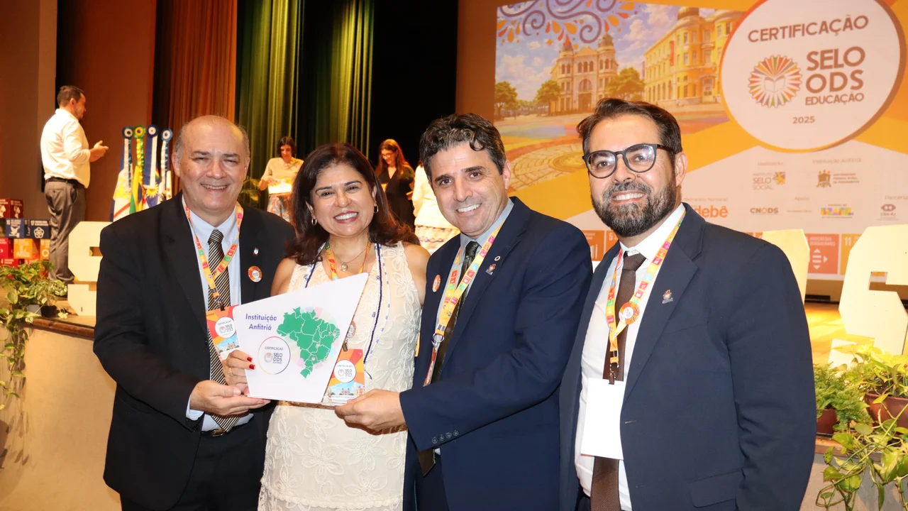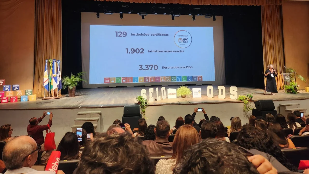 Recife - Teatro Luiz Mendonça lotado, com quase 600 pessoas, representantes de várias instituições de muitos cantos do Brasil, todas com um objetivo comum: disposição para contribuir para o bem-estar coletivo, por um país mais sustentável. E foi nesse clima, no embalo da Orquestra Sinfônica Sagrama, com a presença de 129 instituições, que a Universidade Federal de Alagoas recebeu a missão do Instituto Selo Social de sediar a Cerimônia Nacional de Certificação do Selo ODS Educação, em 2027.