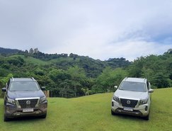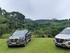 A Nissan todas as versões da linha Frontier 2024 para o test drive entre as cidades de São Paulo-Campos do Jordão-São Paulo, em um trajeto com aproximadamente 350 quilômetros por ruas e estradas, intercalando asfalto, terra, cascalho, buracos, lama etc.