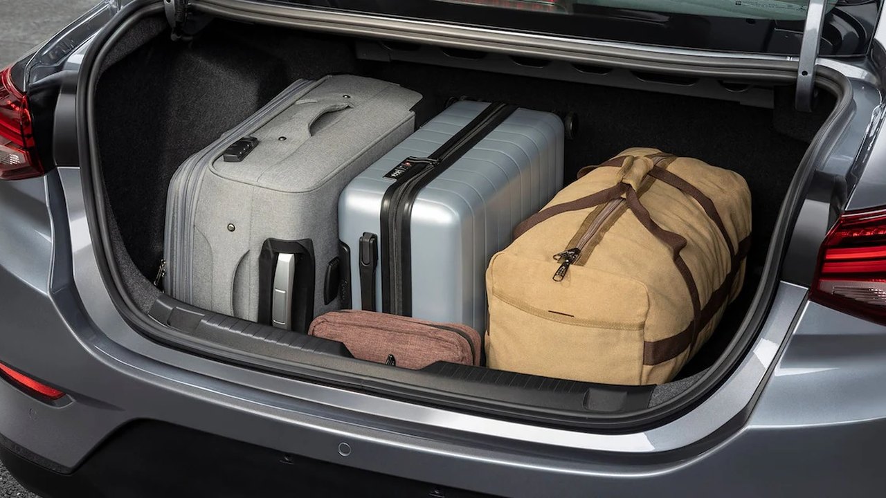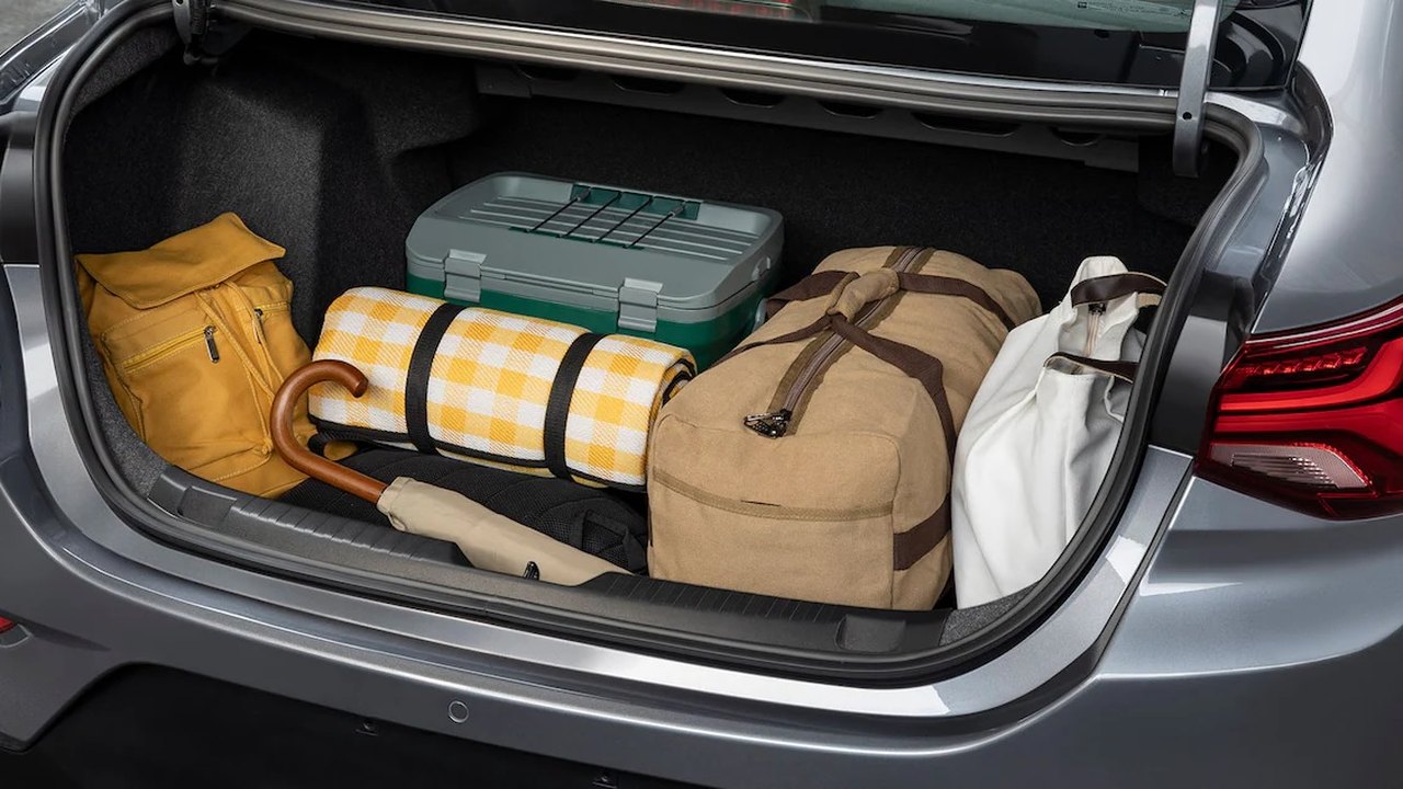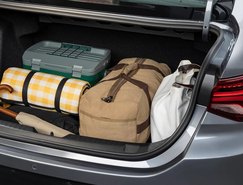O compartimento de bagagem, em razão das dobradiças fixadas nas extremidades da tampa, permite a acomodação de objetos mais largos e um total de 469 litros.