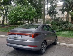 A traseira traz lanternas integradas que cruzam o carro de lado a lado. Destaque para a harmonia entre o para-choque, as lanternas traseiras em LED, as luzes de seta e de ré posicionadas na lanterna e o design da tampa do porta-malas. As rodas de liga leve de 16” contam com acabamento diamantado e vêm com design específico.