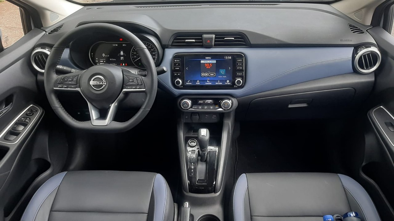 A linha Nissan Versa 2024 é importada do México e oferecida em três versões, todas equipadas com motor 1.6 16V Flex e transmissão Xtronic CVT, que entregam até 113 cavalos de potência – também não tem a opção de motor turbo.