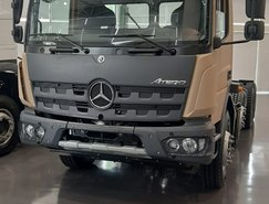 A linha Atego 2024 chega ao mercado com uma frente mais moderna e entre as novidades temos o novo defletor de ar com atualização aerodinâmica, novo spoiler frontal com farol de neblina opcional na versão rodoviária, grade frontal robusta com design do Actros e para-choque com acabamento termoplástico.