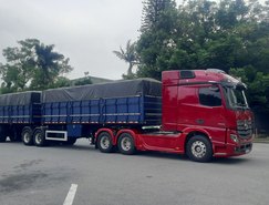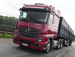 Com habilidade, Sanchez saiu com o Actros 2653 6x4 carregando 45 toneladas em um implemento bitrem da fábrica da Mercedes-Benz, localizada na cidade de São Bernardo do Campo, e por aproximadamente duas horas e cerca de 100 quilômetros rodados por trechos urbanos e rodoviários, pude comprovar toda sua capacidade profissional.