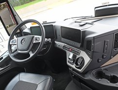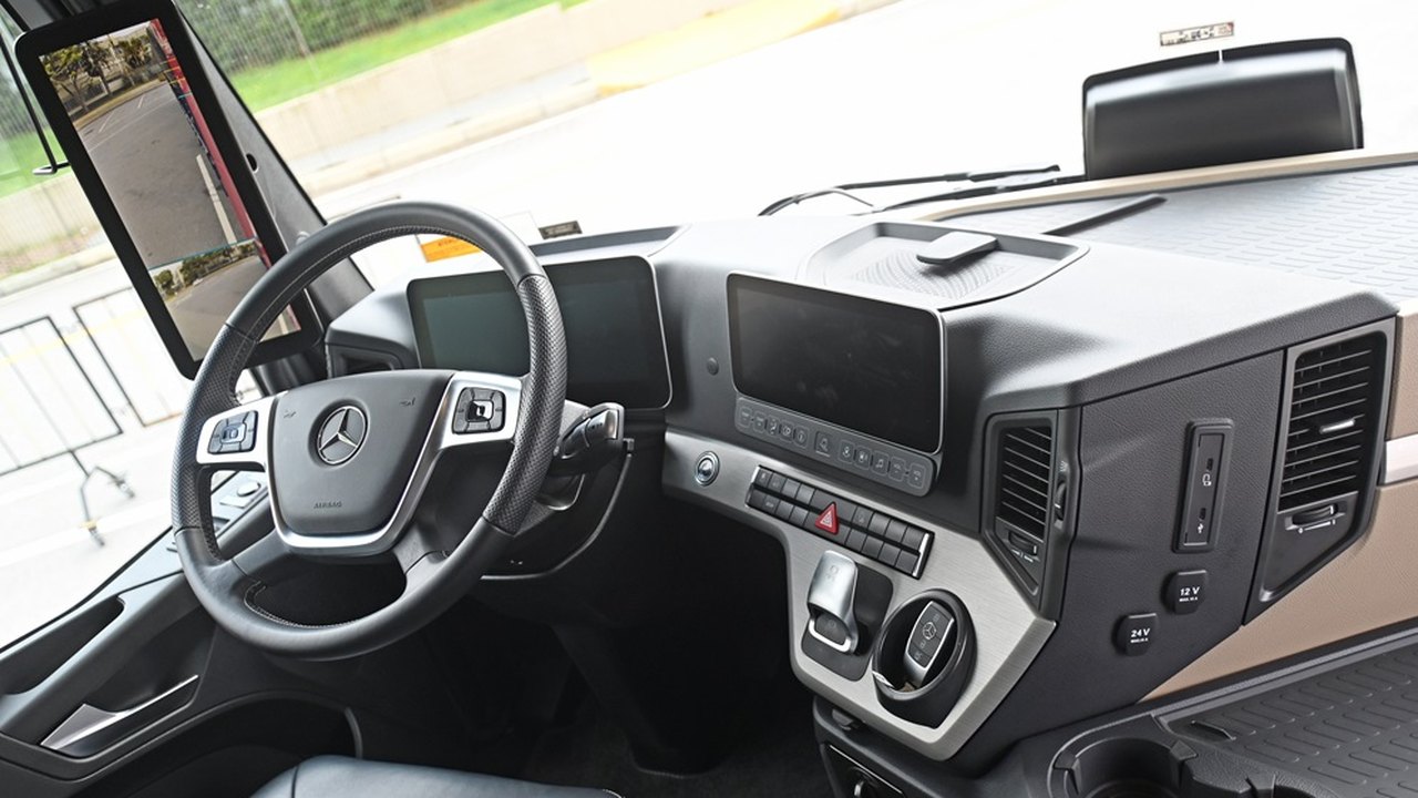 O caminhão ainda é equipado com a segunda geração do MirrorCam, que fornece ao motorista um suporte ainda melhor em muitas situações no tráfego rodoviário, graças aos braços da câmera 10 centímetros mais curtos e aos novos parâmetros de imagem.