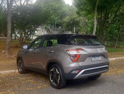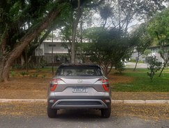 Na parte traseira as lanternas em LED exibem uma assinatura de luz, enquanto a inscrição com o nome do SUV aparece centralizada e espaçada acima da placa. As identificações dos motores, “2.0” ou “TGDI”, aparecem ao lado direito do para-choque, na parte inferior da traseira.