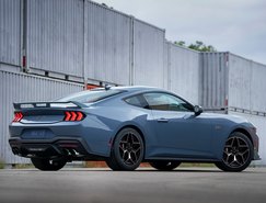 No design a Ford fez questão de mostrar que a sétima geração do Mustang combina linhas modernas com elementos clássicos do modelo original dos anos 60. Sua frente apresenta uma nova grade, faróis full-LED e entradas de ar no capô. A traseira, em formato de cunha, exibe novas lanternas de três barras e aerofólio.