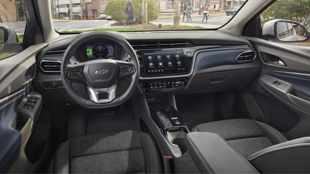 O Chevrolet Bolt EUV Premier conta com acabamento premium e uma ampla lista de equipados de segurança e comodidade, entres eles 10 airbags, alerta de colisão com frenagem automática de emergência, controle de cruzeiro adaptativo, câmeras 360 graus para manobras, volante e bancos com aquecimento, sistema de áudio da marca BOSE e teto solar panorâmico.
