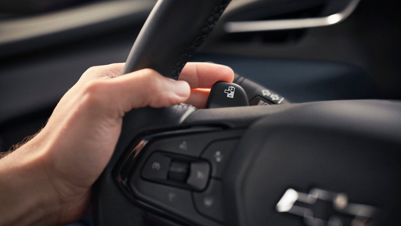 O veículo é equipado com aleta atrás do volante para acionar os freios regenerativos e sistema de condução One Pedal, que reduzem a velocidade, ajudando a parar o veículo sozinho, sem a necessidade de pisar no pedal de freio.