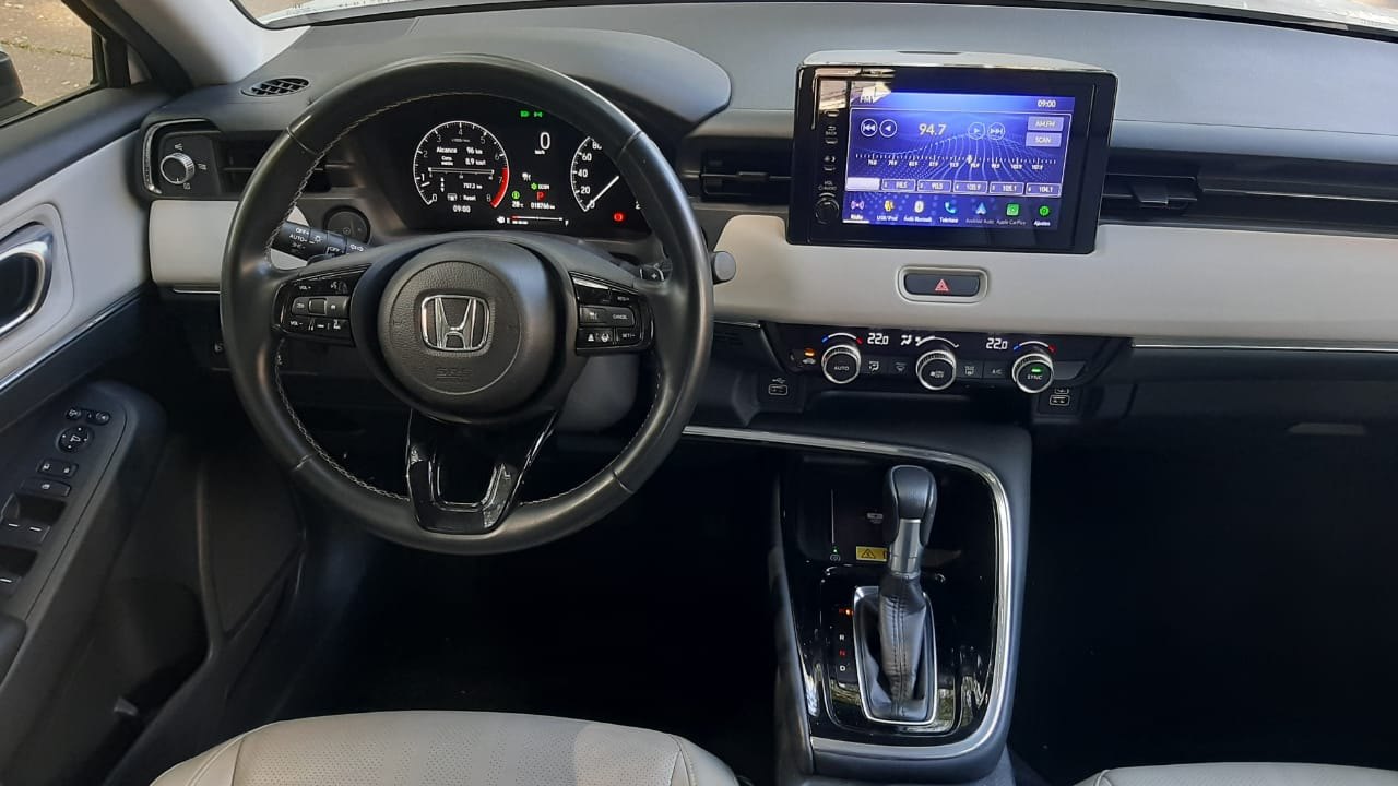 Todas as quatro versões do Honda HR-V 2025 vêm com o câmbio CVT. Nas versões EXL Sensing, Advance e Touring oferece simulação de sete marchas por meio dos paddle shifts no volante.
