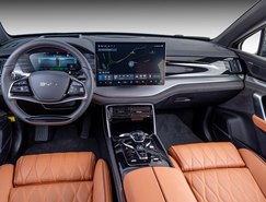 A maior parte dos comandos, como do sistema de navegação ao ar-condicionado, concentra-se na tela do sistema multimídia. Ar-condicionado automático de três zonas de temperatura e saídas independentes para a área do meio/traseira com sistema de purificação com filtro PM2.5 e ionizador, além de carregamento sem fio para celulares, estão presentes no SUV.
