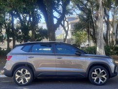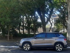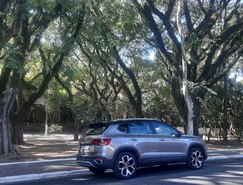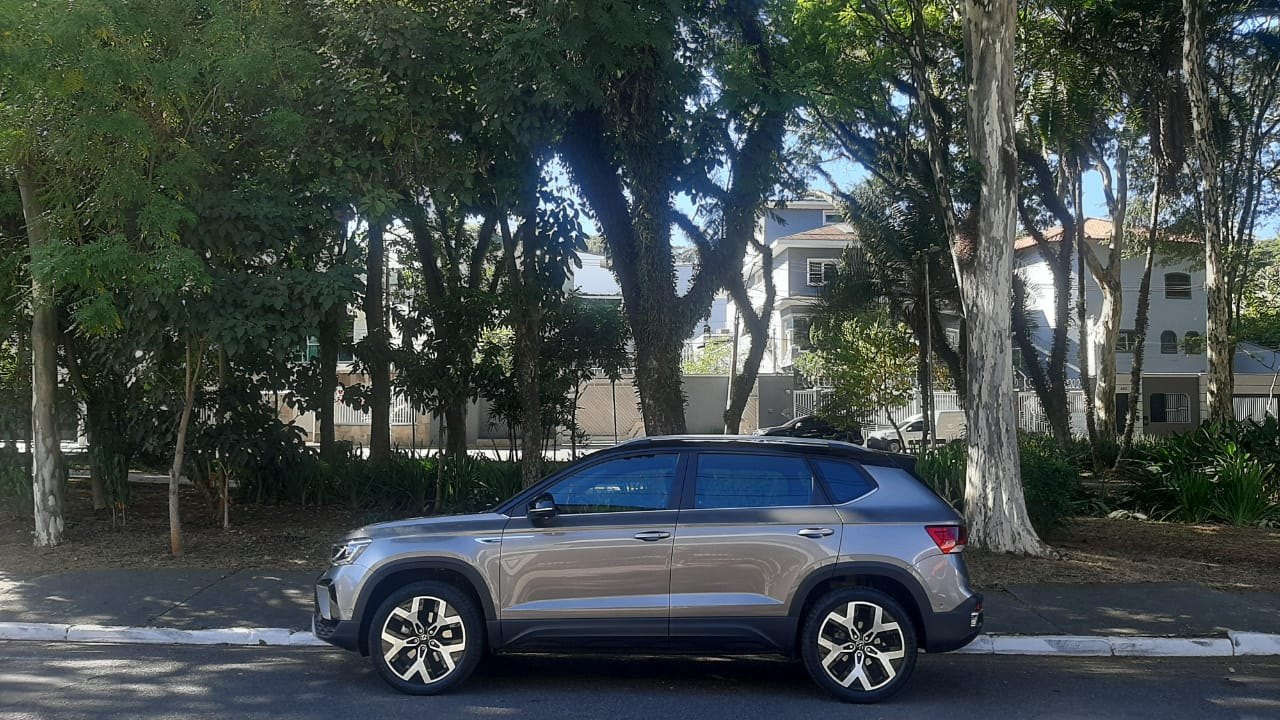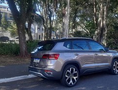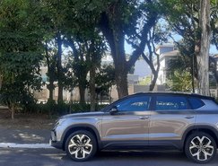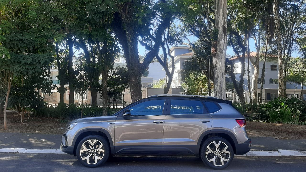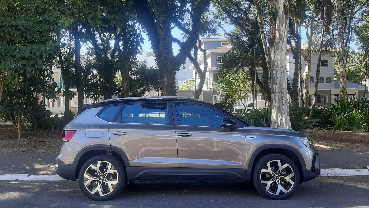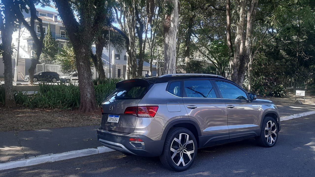Na traseira as lanternas acompanham o grafismo dos faróis. O nome Taos vem fixado na base da tampa do porta-malas e, mais à direita, o emblema 250 TSI, uma referência ao torque de 250 Nm – não confundir com a potência do modelo, que como citado acima são 150 cavalos. As rodas são de liga leve de 18 polegadas, de série nas duas.