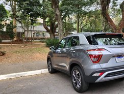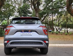 Na parte traseira as lanternas em LED exibem uma assinatura de luz, enquanto a inscrição com o nome do SUV aparece centralizada e espaçada acima da placa. As identificações dos motores, “2.0” ou “TGDI”, aparecem ao lado direito do para-choque, na parte inferior da traseira.