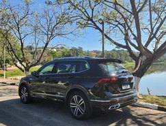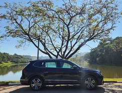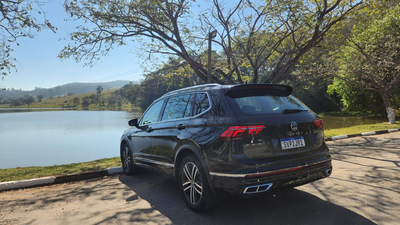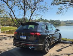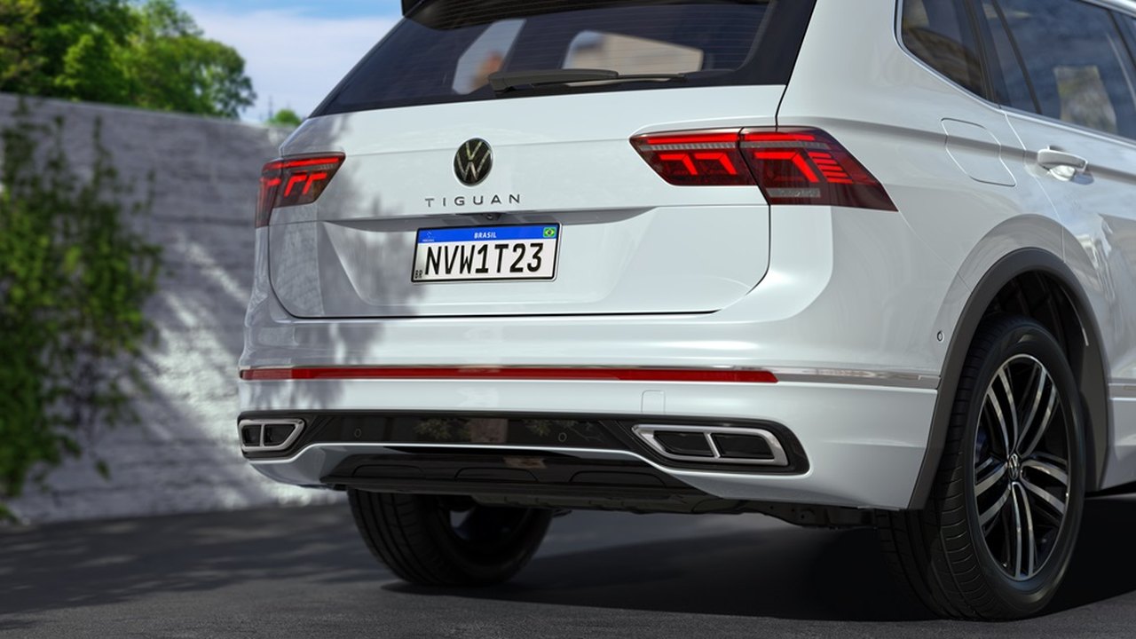 O Volkswagen Tiguan Allspace R-Line é equipado com motor 300 TSI apenas a gasolina que, com uma transmissão automática de oito velocidades, entrega uma potência de 186 cavalos.