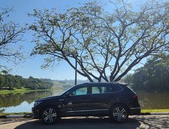 Para quem viaja na terceira fileira de bancos, o acesso é facilitado pelo rebatimento do banco traseiro, além do bom espaço para as pernas. O espaço para o porta-malas ainda é generoso, mesmo com a terceira fileira em uso. A tampa traseira é elétrica com função Easy Open, facilitando a abertura quando as mãos estão ocupadas.