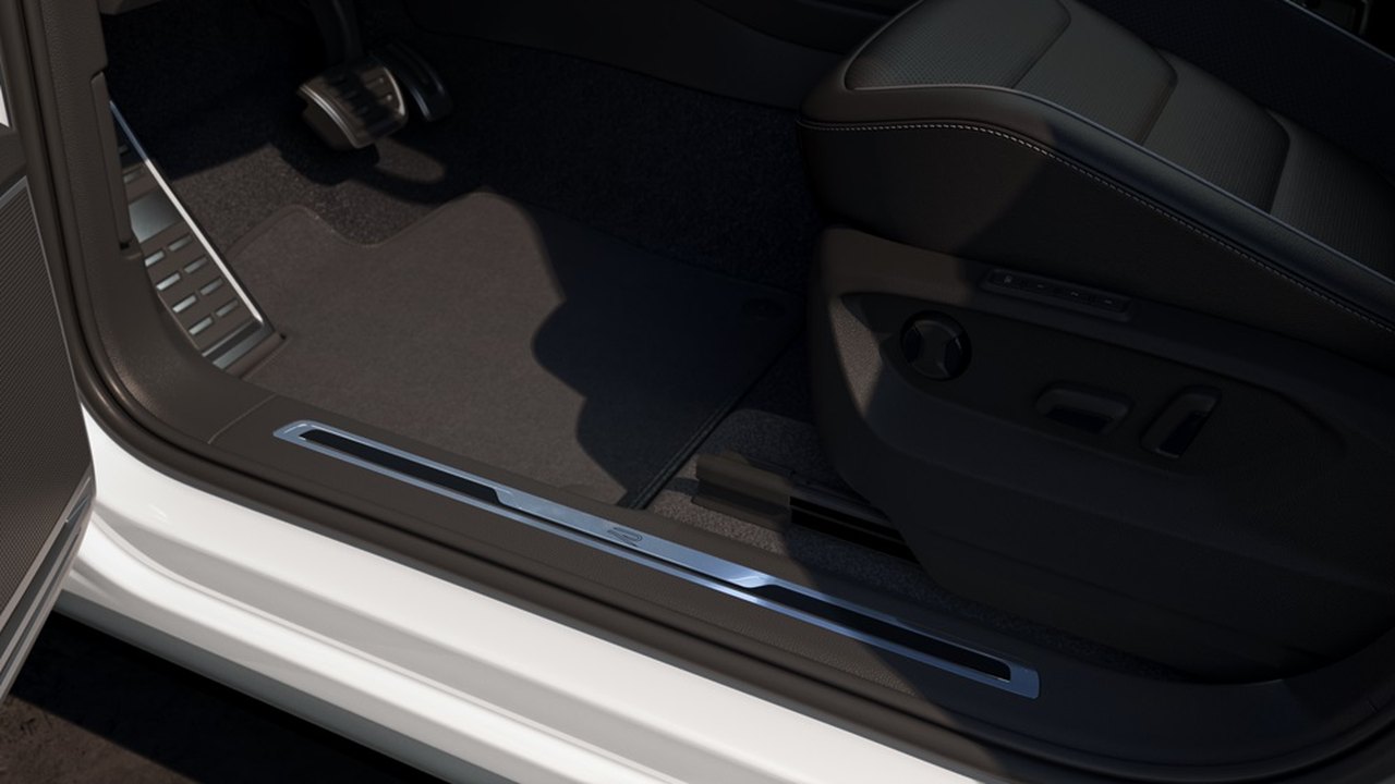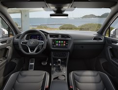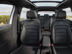 Os itens de conforto, tecnologia e segurança tomam conta da cabine. Os bancos em couro são perfurados, climatizados, elétricos e com memória para o motorista. E ainda recebem o emblema “R” no encosto. O novo volante capacitivo com botões touch, aquecimento e shift paddles tem alusão à versão R-Line na parte inferior. O acabamento em couro se estende para o painel e também para as quatro portas com porta-objetos revestidos de carpete, completando os materiais premium do habitáculo.