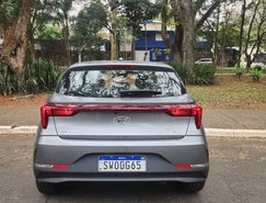 No design a linha Hyundai HB20 2025 conta com grade frontal com elementos paramétricos, faróis com DRL de série e versão em LED, para-choque que abriga as luzes de seta e para-lamas e capô mais horizontais. A traseira traz lanternas integradas que cruzam o carro de lado a lado. O para-choque conta com elementos em preto fosco, as lanternas traseiras são em LED, as luzes de seta e de ré estão posicionadas nos para-choques.