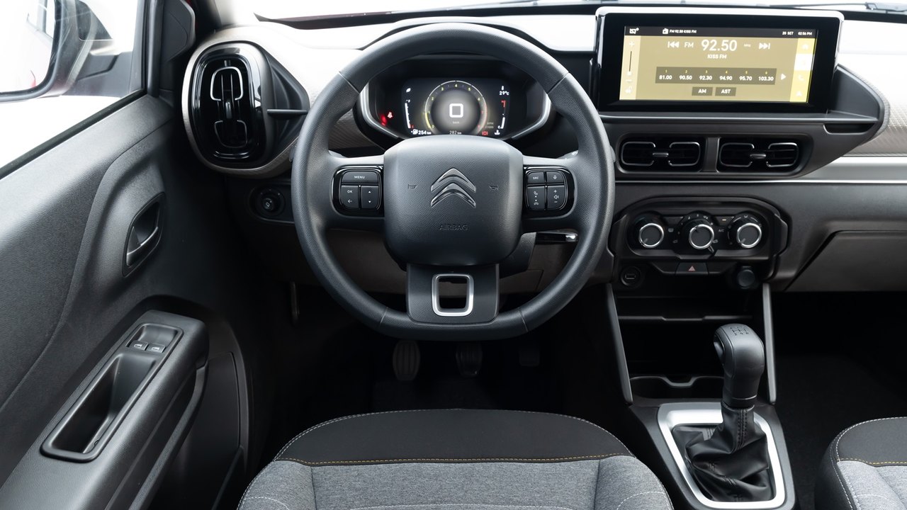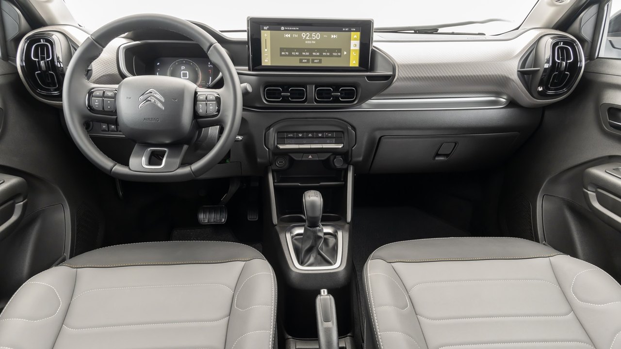 O interior foi projetado para receber até cinco adultos com conforto. O painel adota uma ampla faixa bicolor no tom Solar Bronze, integrando visualmente o painel digital colorido de 7” com a central multimídia Citroën Connect Touchscreen de 10,25 polegadas com Android Auto e Apple Carplay e seis alto-falantes. Logo abaixo dele, a oferta do ar-condicionado digital automático permite a escolha da temperatura que melhor agrade aos ocupantes ao toque de um botão.
