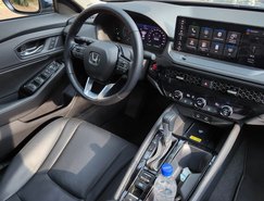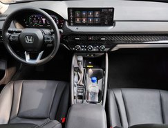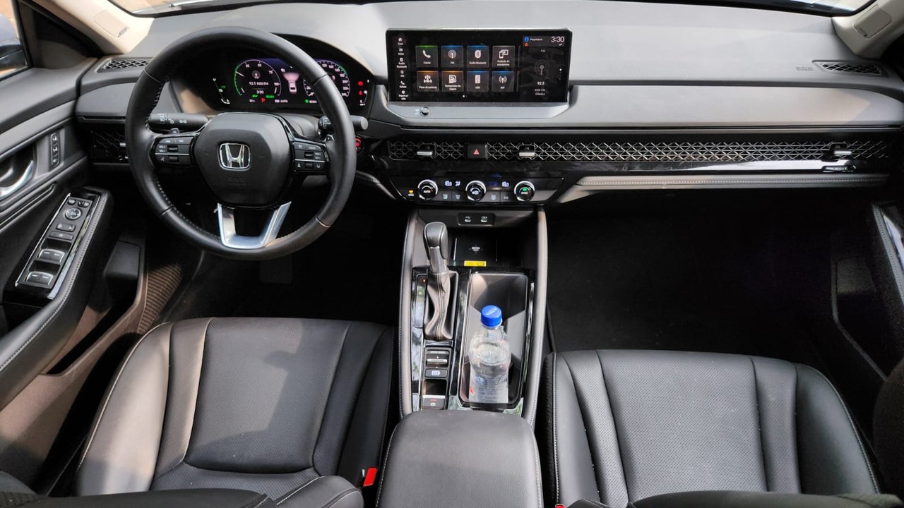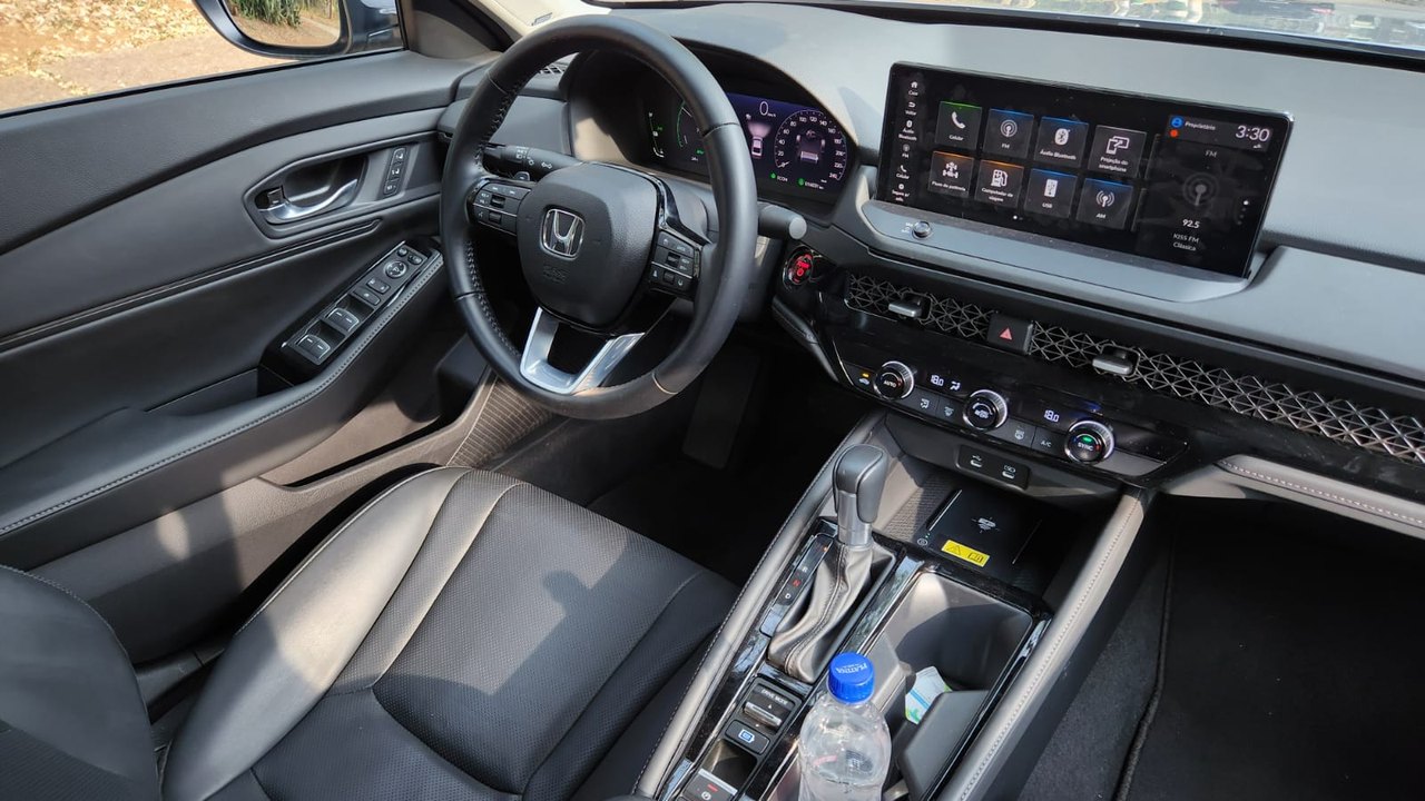 A porção central do painel é ocupada por uma tela multimídia sensível ao toque de 12,3 polegadas com botão físico de volume de áudio. Para facilitar a operação touchscreen, a tela fica em posição recuada, o que resultou em uma confortável área de apoio para a mão. O sistema de entretenimento do Accord é compatível com os padrões Apple CarPlay e Android Auto.