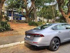 A grade dianteira tem acabamento Black Piano e conjunto com os faróis full-LED com DRL. Na traseira, o conjunto óptico é formado por lanternas bipartidas, unidas por uma barra luminosa com o H da Honda ao centro de uma superfície limpa e nivelada, que se harmoniza com a parte dianteira por exaltar a largura da carroceria.