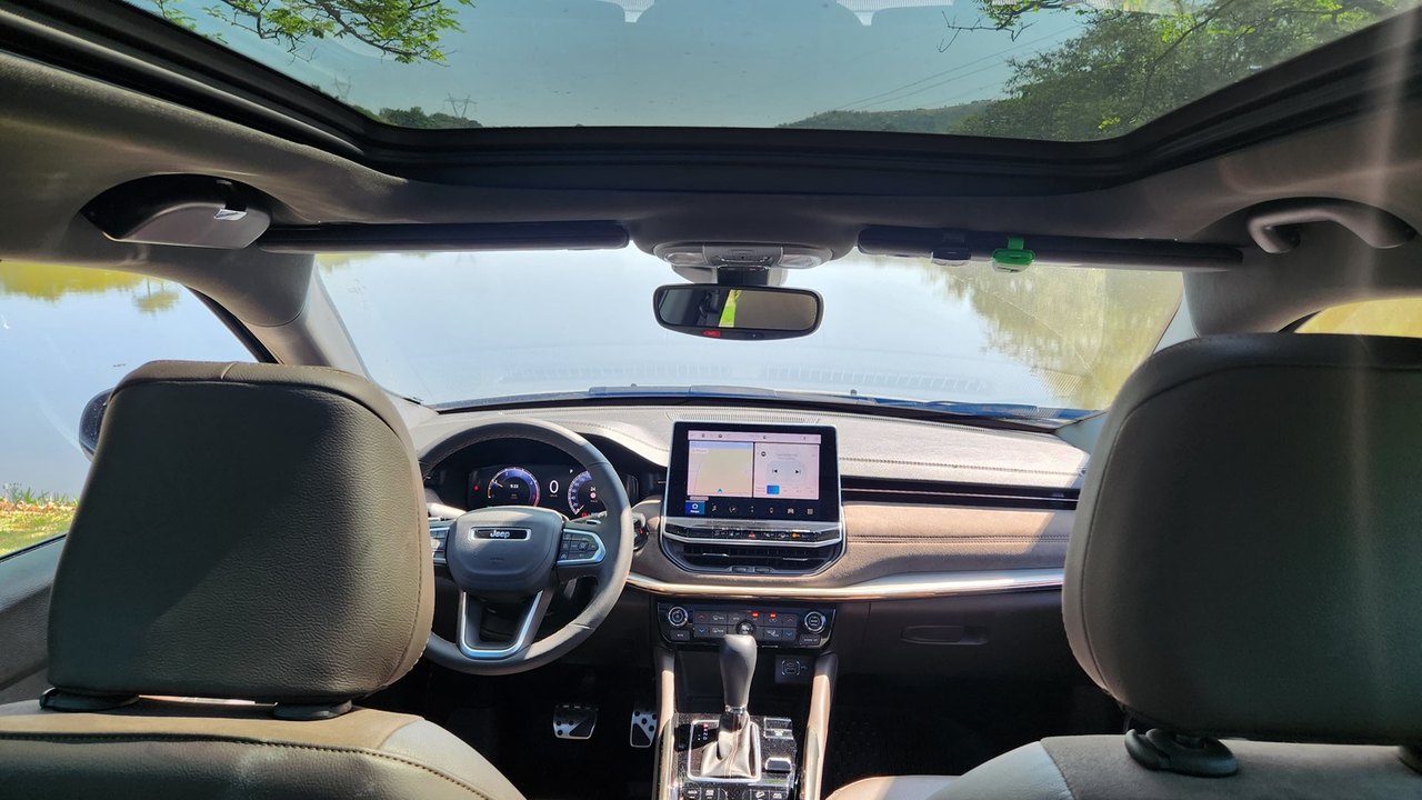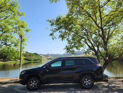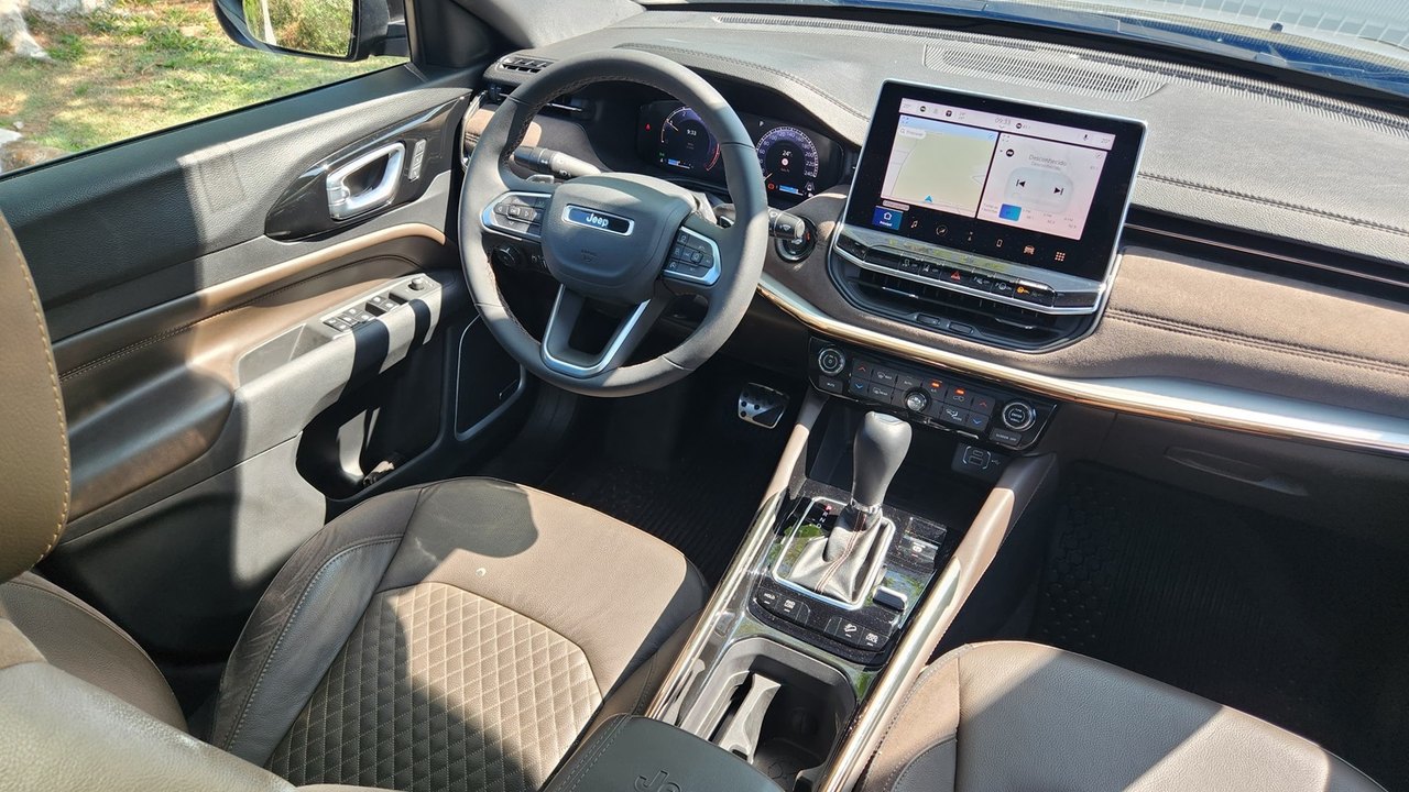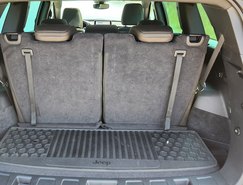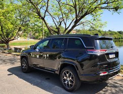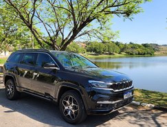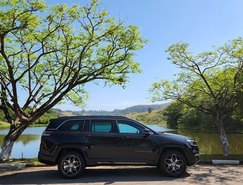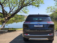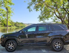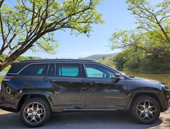 O porta-malas, em todas as versões, possui acionamento elétrico, com as configurações Overland e Blackhawk incluindo um sistema hands-free, que permite abrir o compartimento sem o uso das mãos, apenas ao passar o pé sob o para-choque traseiro. Esses detalhes de conveniência complementam o perfil do Commander como um modelo preparado para o dia a dia e para viagens em família.