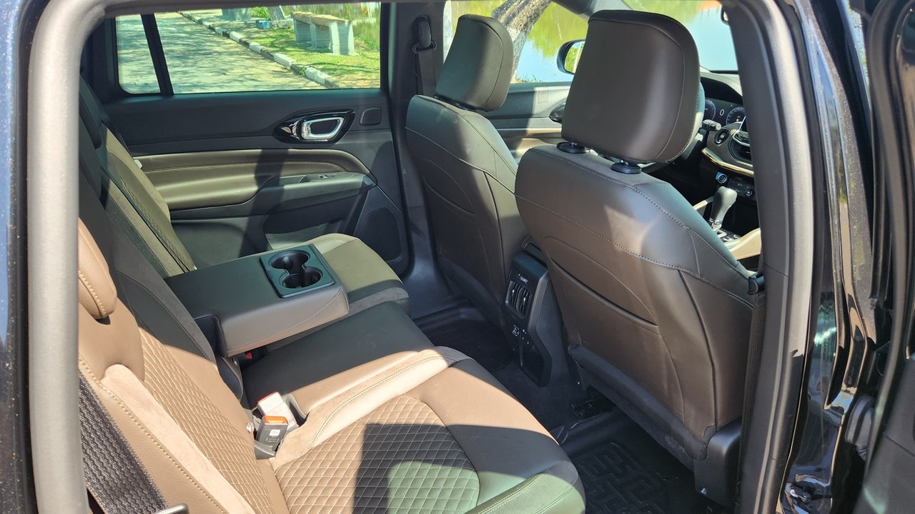 A acessibilidade ao espaço interno foi outro ponto aprimorado pela Jeep. O modelo possui um mecanismo na segunda fileira de bancos que permite o fácil acesso à terceira fileira com um leve toque na alavanca, facilitando a acomodação de passageiros de todas as idades. Para tornar a viagem ainda mais confortável, os assentos da segunda e terceira fileira são reclináveis e a segunda fileira pode ser ajustada longitudinalmente em até 14 centímetros. Essa versatilidade permite personalizar o espaço interno para maximizar o conforto dos ocupantes ou aumentar a capacidade de carga.