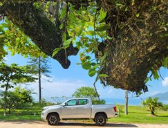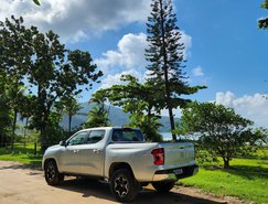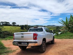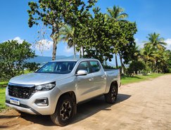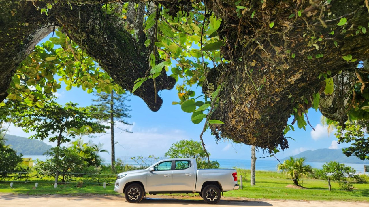 Para testar as capacidades da Titano, percorri diferentes tipos de estrada. A avaliação incluiu uma viagem até Ubatuba, no litoral norte de São Paulo, onde a picape demonstrou um desempenho consistente tanto na serra quanto em trechos urbanos. Além disso, houve deslocamentos para Campinas e Itatiba, no interior paulista, que permitiram avaliar a estabilidade e o conforto em rodovias bem pavimentadas. Nessas condições, o conjunto mecânico mostrou respostas ágeis, enquanto o isolamento acústico garantiu uma condução agradável.