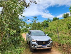 A oportunidade mais interessante para explorar as habilidades off-road da Titano surgiu durante a ida até Bom Repouso, no sul de Minas Gerais. Em estradas de terra e trechos mais desafiadores, os modos de tração 4H e 4L se mostraram eficientes, oferecendo controle preciso mesmo em situações de baixa aderência. A distância do solo de 235 mm, combinada aos ângulos de entrada e saída, facilitou a passagem por obstáculos sem comprometer o conforto dos ocupantes. Esses trajetos reforçaram a impressão de que a picape está preparada para enfrentar tanto o uso urbano quanto as exigências fora de estrada.