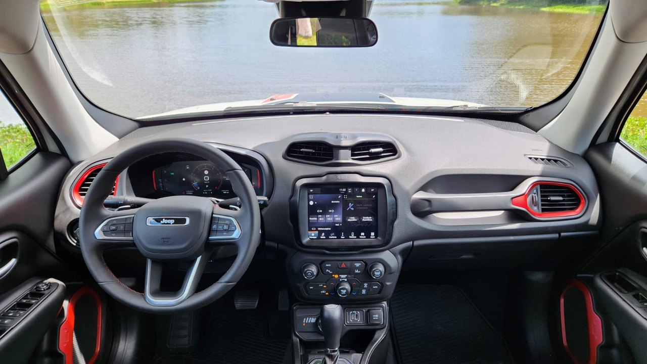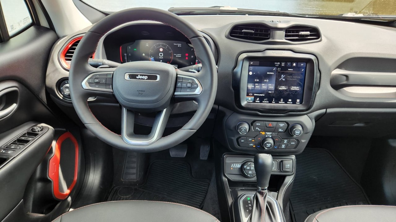 Entre os modelos com tração 4x4, o Trailhawk, avaliado por nós durante a última semana, destaca-se como opção para quem busca experiências off-road mais exigentes. Equipado com rodas de 17 polegadas, bancos revestidos em couro e câmbio automático de nove marchas da ZF, essa versão conta com suspensão elevada e maior ângulo de ataque. O bloqueio eletrônico do diferencial e o seletor de terrenos com cinco modos garantem capacidade para enfrentar diferentes tipos de solo. O Hill Descent Control permite maior controle em descidas ingrimes, ajustando automaticamente a velocidade do veículo.