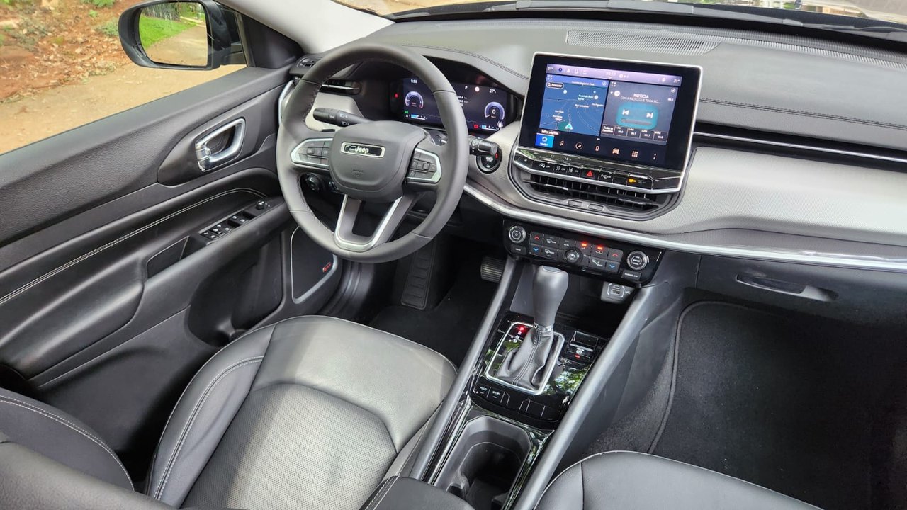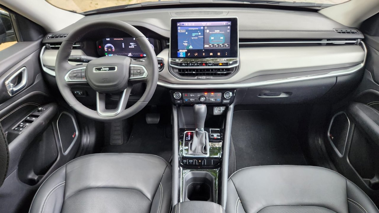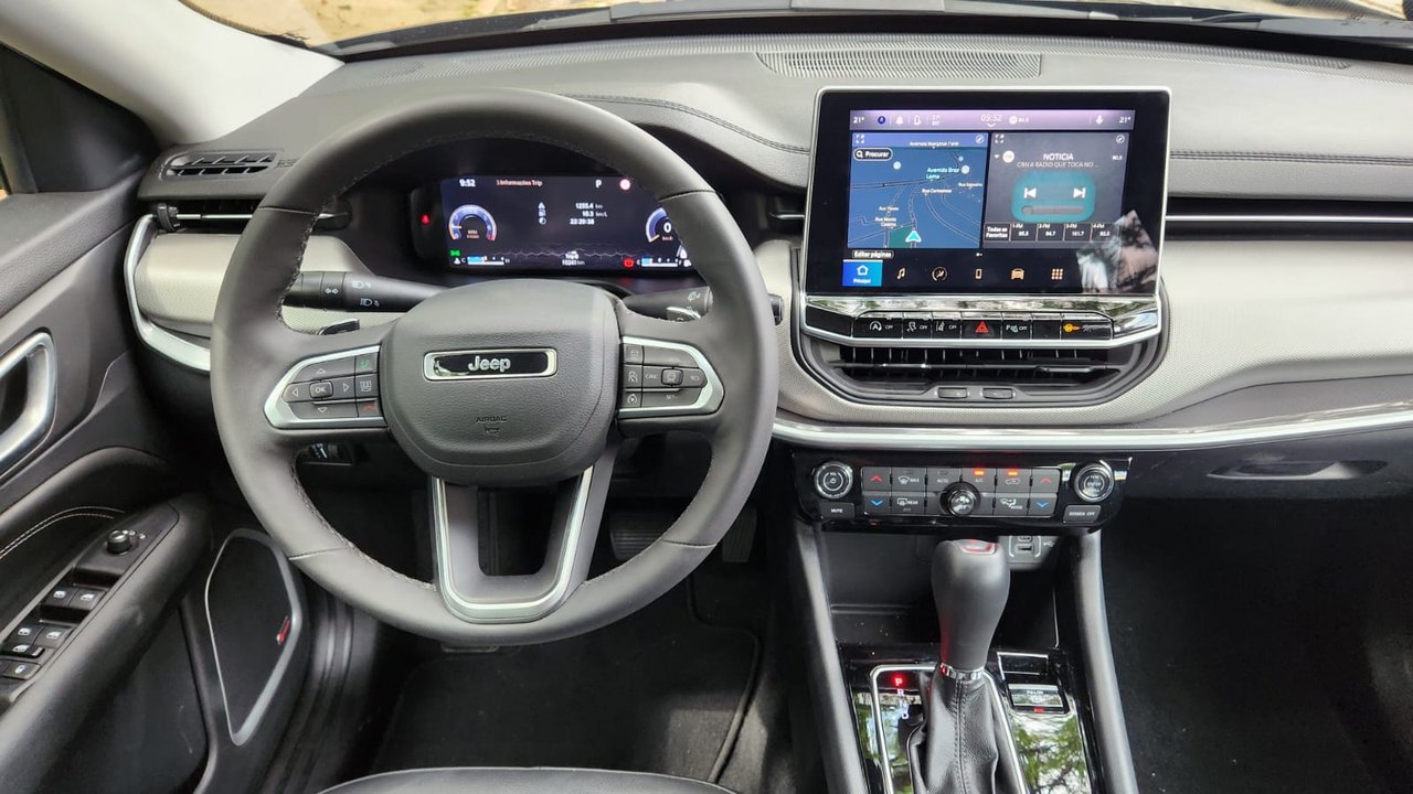 No quesito conforto, o Jeep Compass 2025 se destaca com acabamentos premium, ar-condicionado dual zone e teto solar Command View, que esteve presente na versão testada. O sistema de som Beats, com subwoofer e oito alto-falantes, proporcionou uma experiência sonora imersiva durante o trajeto.