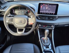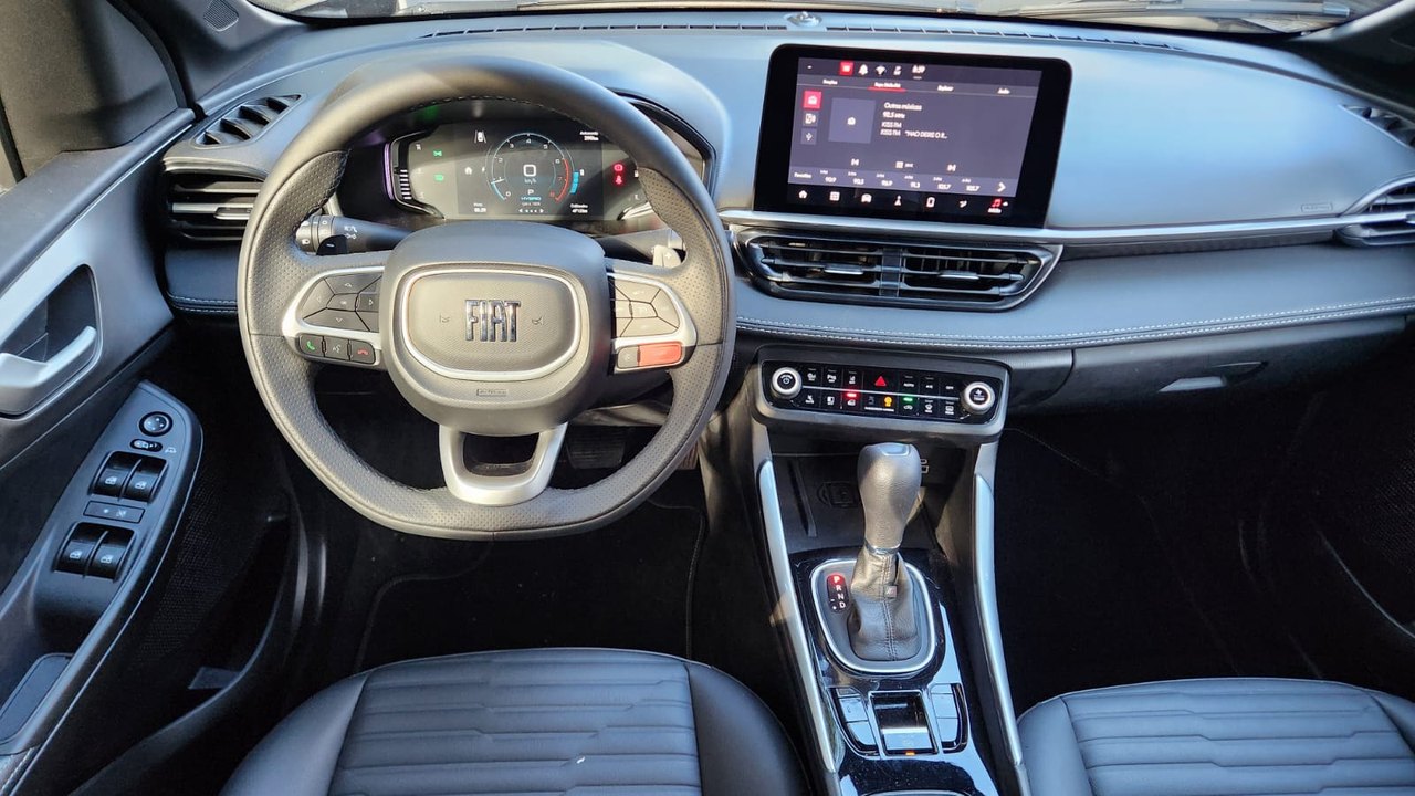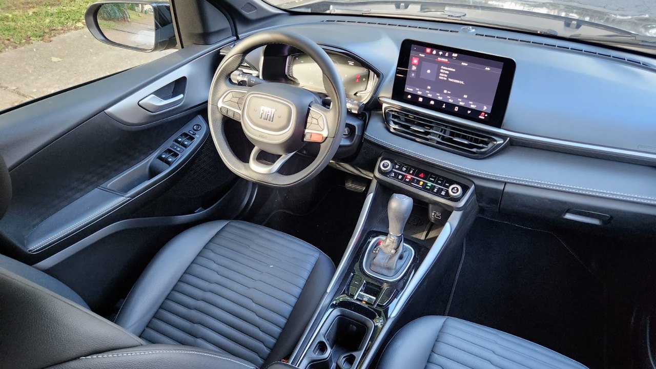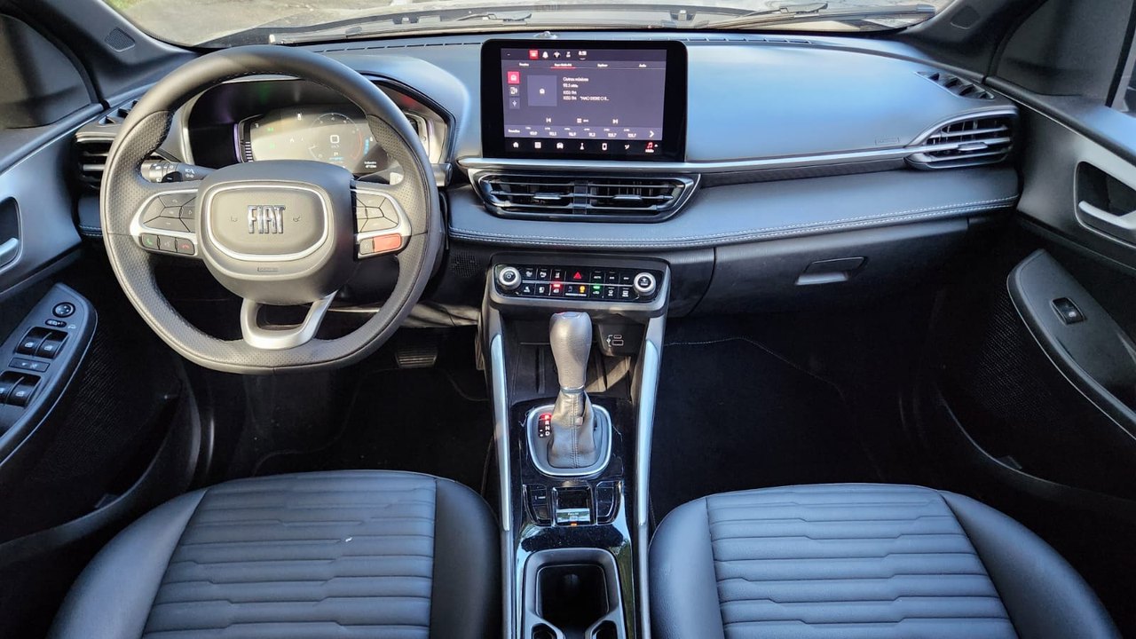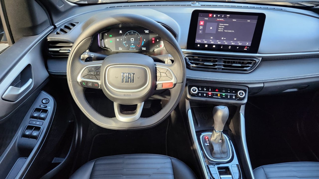 O modelo também conta com bancos revestidos em couro, ar-condicionado digital automático com saída traseira e rodas de liga leve de 18 polegadas. A central multimídia de 10,1 polegadas com Android Auto e Apple CarPlay sem fio manteve a conectividade estável ao longo dos dias de uso. O carregador por indução com ventilação dedicada para o smartphone contribui para uma experiência contínua de integração digital.