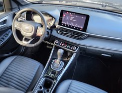 Na parte de segurança e assistência à condução, o Fastback Impetus é equipado com ADAS, incluindo frenagem autônoma de emergência, assistente de permanência em faixa e farol alto comutável automaticamente. Essas tecnologias funcionaram de forma previsível e sem alarmes falsos nos trechos com sinalização de solo visível e tráfego moderado.
