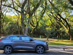 A versão Impetus avaliada traz diferenciais que vão além do conjunto motriz. Os sensores de estacionamento dianteiro, o retrovisor interno fotocrômico e o sistema de rebatimento elétrico dos retrovisores com luz de cortesia agregam funcionalidades úteis no dia a dia urbano. Nas ruas estreitas e garagens apertadas que frequentei, esses recursos foram bastante utilizados.