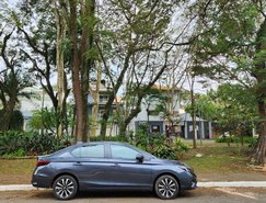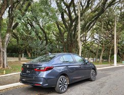 No design o modelo conta com novos para-choque, grade e acabamento cromado superior na dianteira. A traseira tem para-choque redesenhado com elementos refletivos horizontais, e todas as versões receberam novas rodas de liga leve – aro 15” na LX e aro 16” nas demais. As alterações reforçam a diferenciação em relação à versão hatchback.