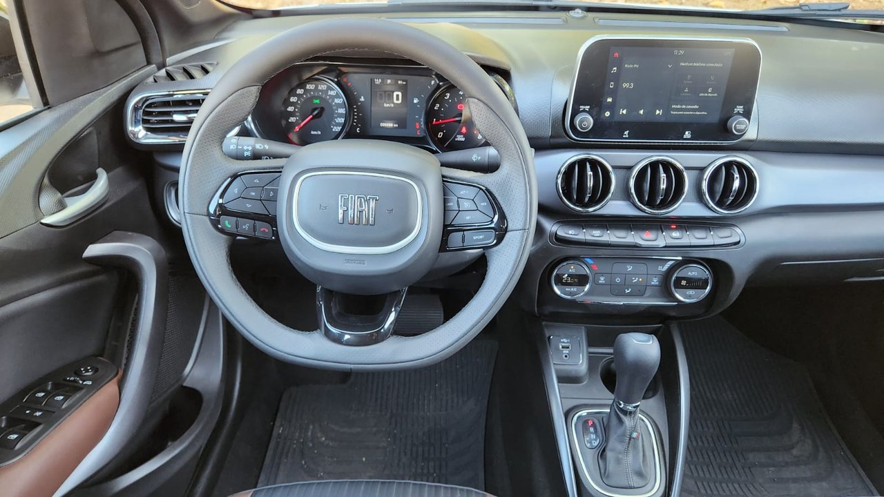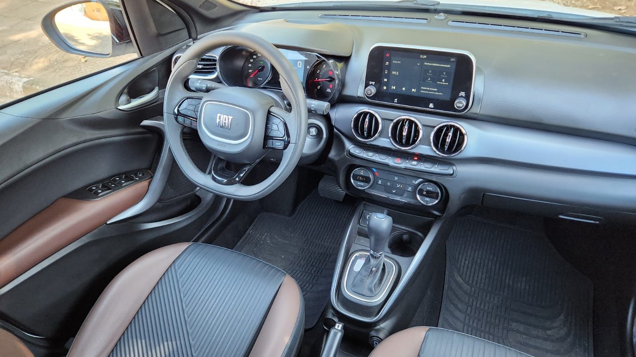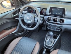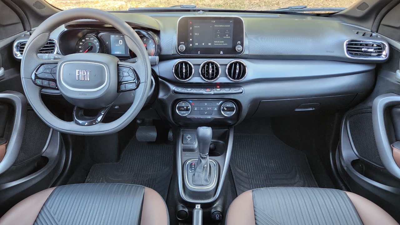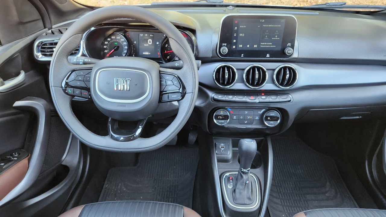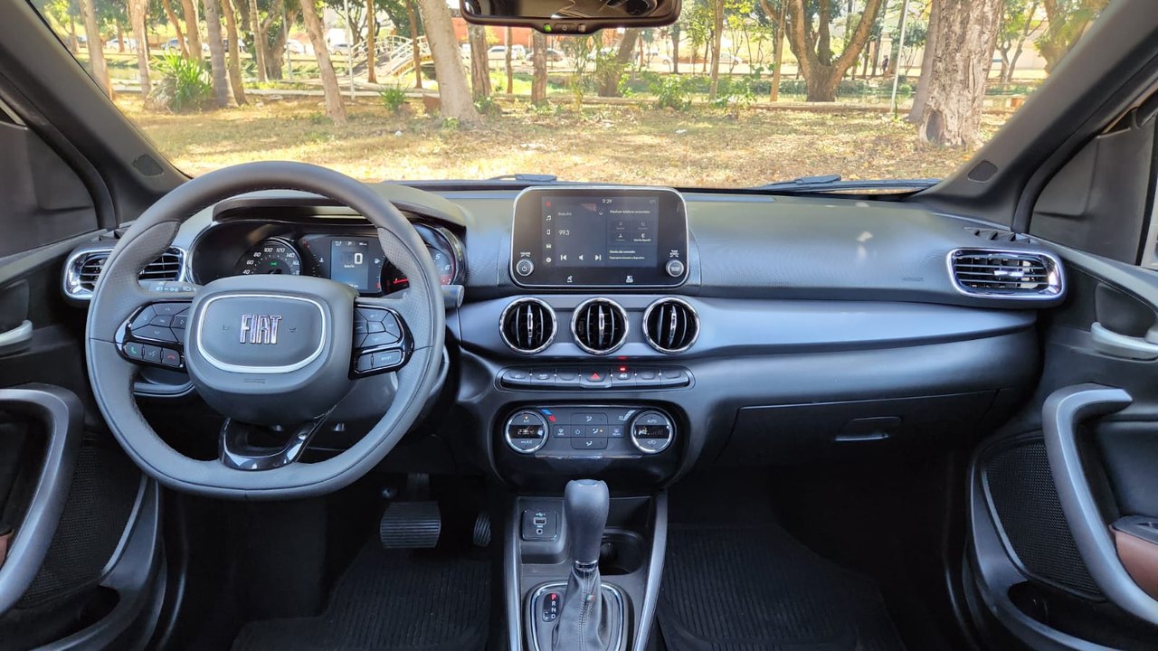 O interior também passou por alterações. O acabamento e o teto agora são escurecidos, e todas as versões oferecem espelhamento sem fio para Android Auto e Apple CarPlay. A versão Precision avaliada conta com bancos em couro preto, ar-condicionado digital, quatro airbags e luzes de cortesia sob os retrovisores. A central multimídia de 7” touchscreen, disponível em toda a linha, integra as funções de conectividade.