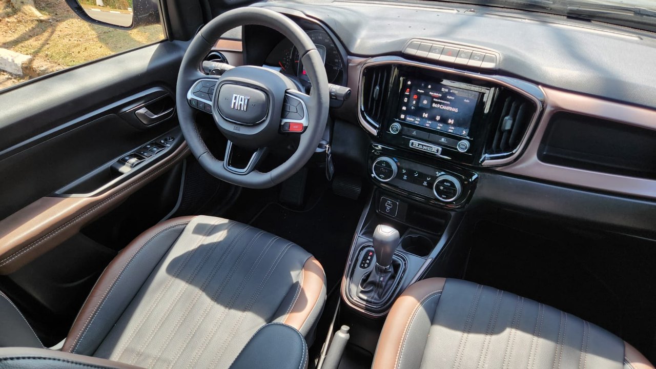 No uso diário na cidade, a Strada mostrou sua vocação para atender atividades rotineiras, oferecendo dirigibilidade simples e boa visibilidade. O motor Turbo 200 Flex, presente nas versões Ranch e Ultra, entrega 130 cavalos quando abastecido com etanol e 125 com gasolina, além de torque de 200 Nm. Esse conjunto acelera de 0 a 100 km/h em 9,5 segundos, trabalhando em conjunto com o câmbio automático CVT que simula sete marchas. O resultado é uma condução que equilibra eficiência e resposta rápida, principalmente quando o modo Sport é acionado pelo botão no volante.