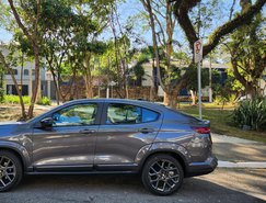 Nos trechos rodoviários, o desempenho mostrou-se consistente para ultrapassagens e retomadas. O torque de 20,4 kgfm esteve disponível em rotações médias, o que trouxe segurança em manobras rápidas. Já no deslocamento até Paranapiacaba, que incluiu trechos de terra, a altura livre do solo de 192 mm, combinada com ângulos de ataque e transposição adequados, garantiu tranquilidade na condução sobre desníveis, valetas e lombadas.