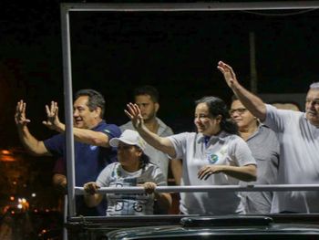 Um trio elétrico puxou a fila anunciando a passagem da candidata a reeleição. Alguns carros atrás, Fabiana, no centro, Raquel, a direita, e Santiago a esquerda, seguiam acenando para as pessoas, que saiam de suas casas para conferir e confirmar o apoio.
