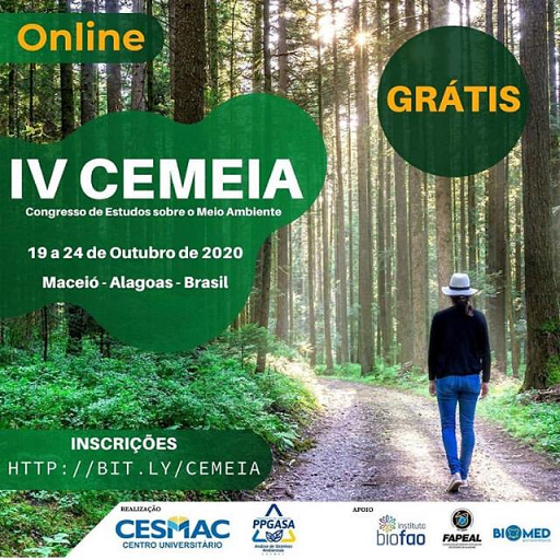 O Programa de Pós-Graduação Análise de Sistemas Ambientais, do Centro Universitário CESMAC realiza, de 19 a 24 de outubro, o IV Congresso de Estudos sobre o Meio Ambiente – CEMEIA. O evento vai acontecer no formato on-line, com o tema central sobre “Mudanças Climáticas e as Cidades Inteligentes”.