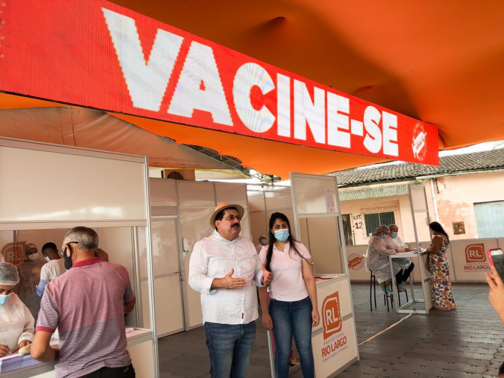 O prefeito de Rio Largo, Gilberto Gonçalves, e a secretária municipal de Relações Institucionais, Gabriela Gonçalves, acompanharam nesta sexta-feira, dia 28, o início da vacinação do novo grupo prioritário contra covid-19. Nesta etapa de imunização, os caminhoneiros residentes em Rio Largo, trabalhadores das indústrias, dos transportes coletivos, ferroviários e da limpeza urbana receberão a primeira dose do imunizante.