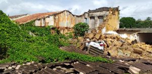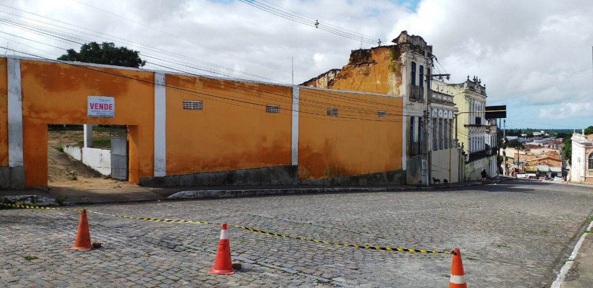 A parede lateral de um sobrado situado no Centro Histórico de Penedo desabou sobre o muro do estacionamento vizinho do imóvel cuja fachada também pode ruir a qualquer momento.