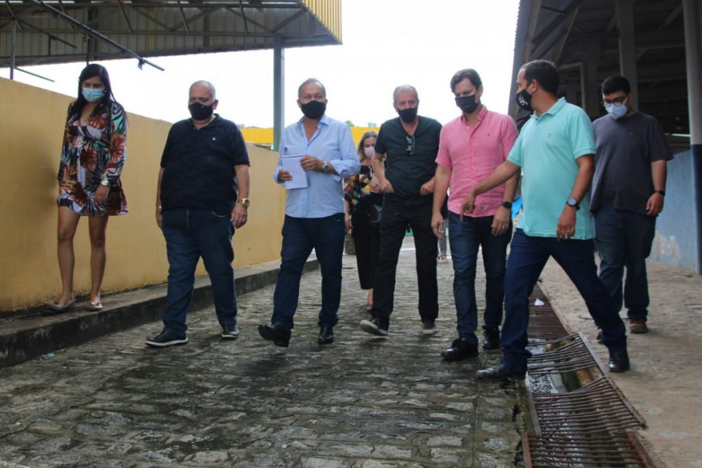 Acompanhado do secretário de Indústria, Comércio, Pesca e Aquicultura, Gastão Lessa, e do diretor do Departamento de Pesca e Aquicultura, Leonardo Beltrão, o prefeito apresentou as instalações do Mercado Público e discutiu alternativas para o melhoramento da cadeia da pesca na região